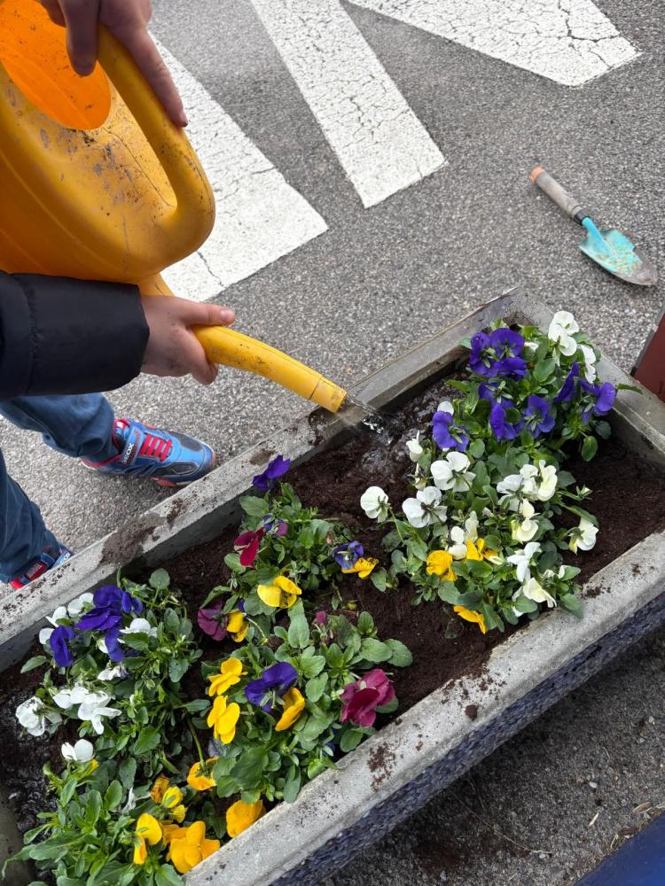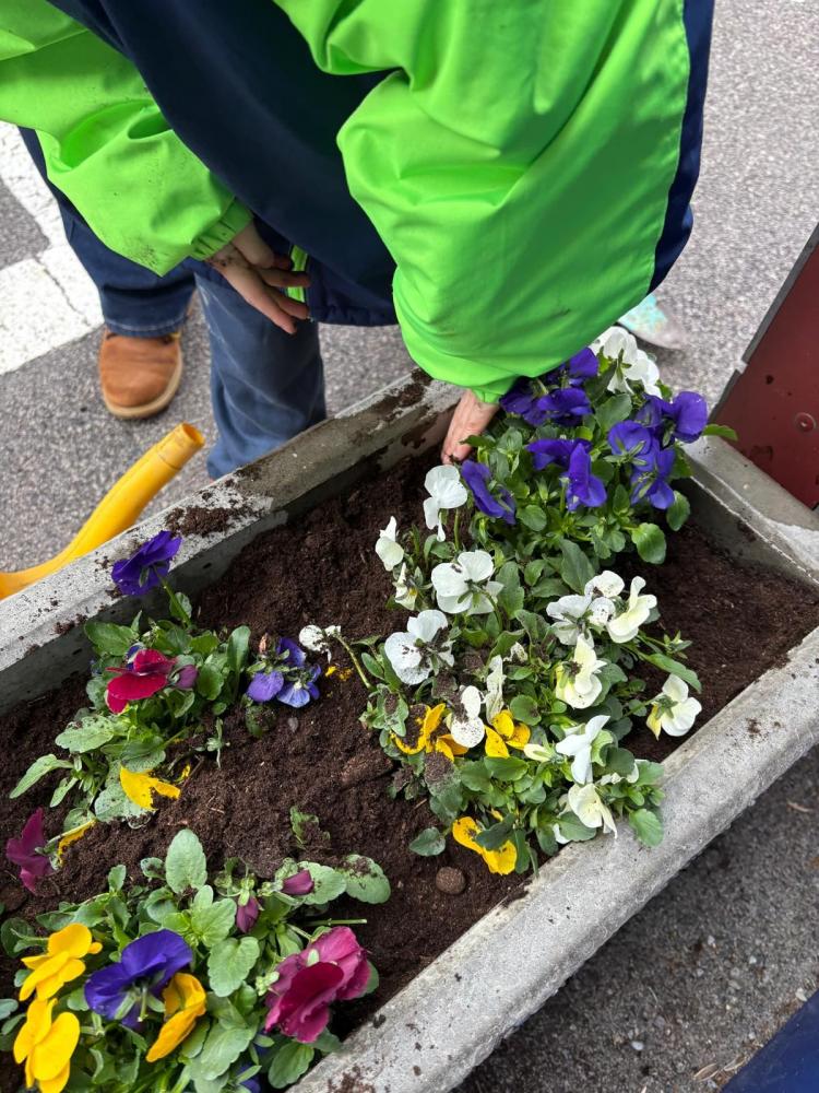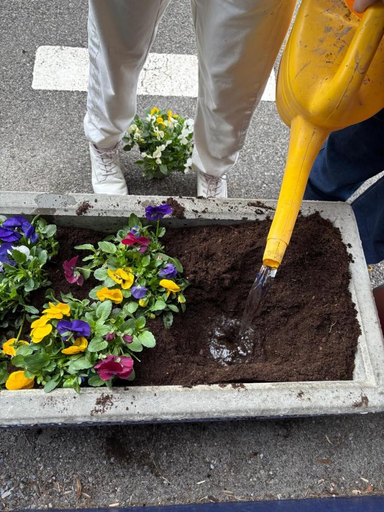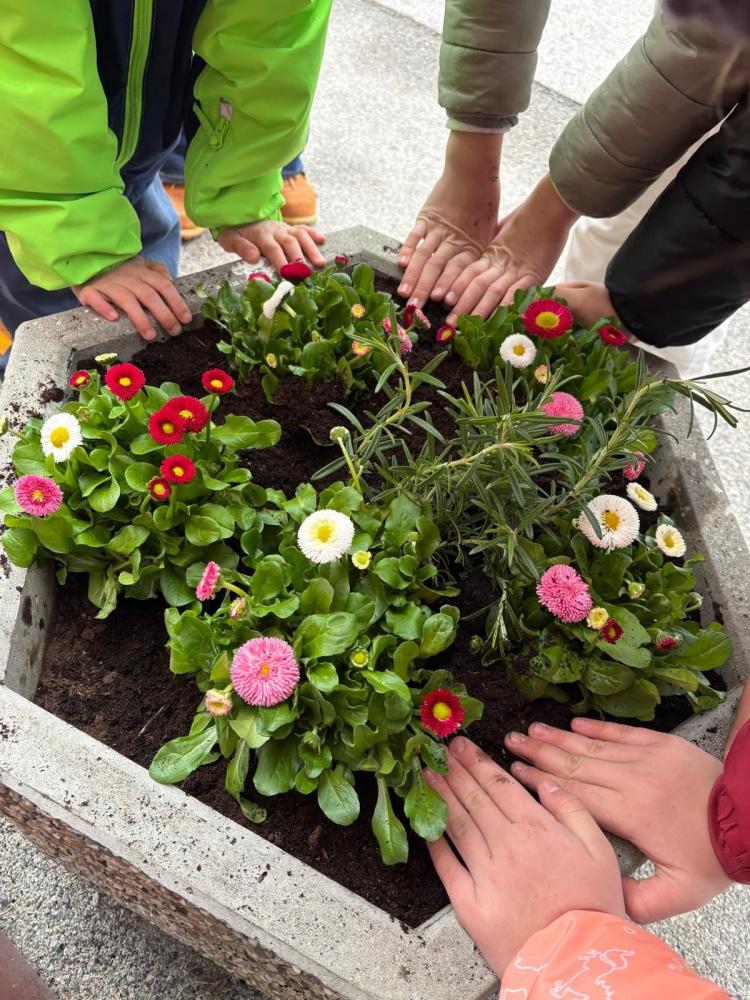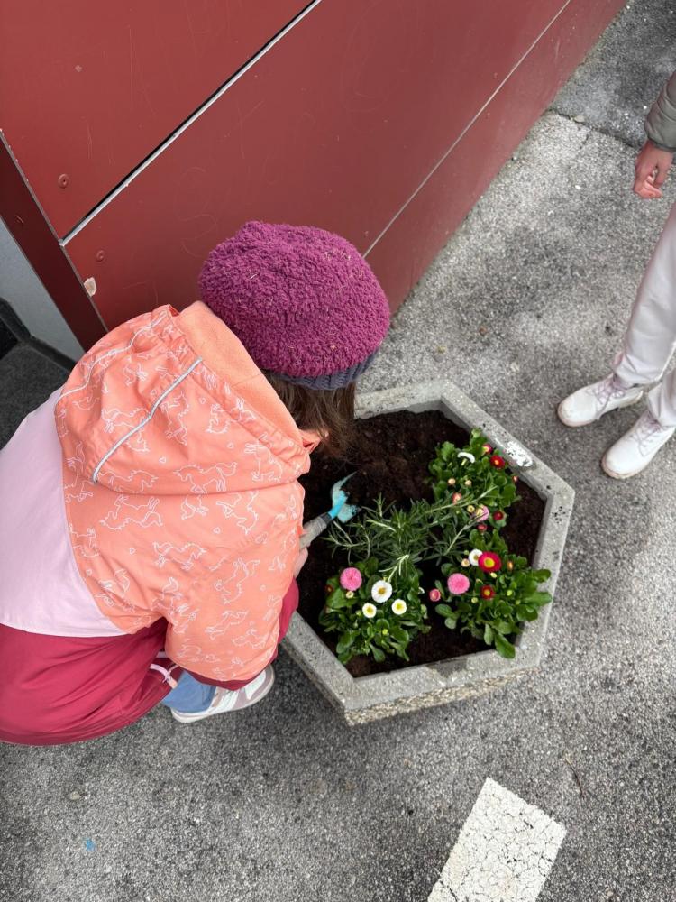 Blütenpracht vor dem Schulhaus